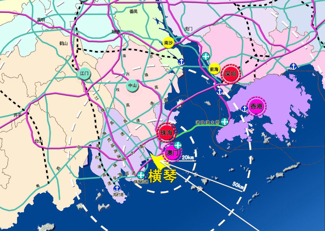 橫琴新區(qū)與有“東方拉斯維加斯”之稱的澳門僅一河之隔,地處“一國兩制”的交匯點和“內(nèi)外輻射”的接合部,是中國走向世界、世界走進中國的重要門戶。隨著港珠澳大橋的通車,橫琴成為內(nèi)地唯一與香港、澳門同時路橋相連的地區(qū)。