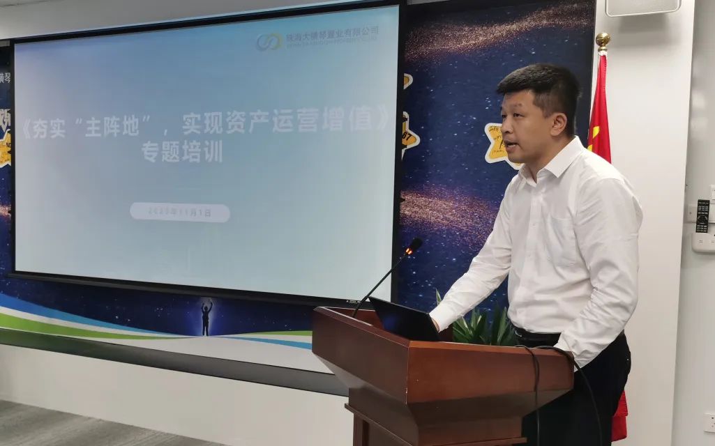 培訓(xùn)會由大橫琴置業(yè)總經(jīng)理助理劉冰一主持,他提出存量資產(chǎn)盤活作為國有資產(chǎn)保值增值的重要手段,特別是對于存量資產(chǎn)多、建設(shè)任務(wù)重、負(fù)債率高的國有企業(yè),也是防范債務(wù)風(fēng)險、籌集建設(shè)資金和優(yōu)化資產(chǎn)結(jié)構(gòu)的重要手段,希望通過本次培訓(xùn),幫助大家拓寬國有企業(yè)轉(zhuǎn)型升級和未來發(fā)展的視野和思路,進(jìn)一步促進(jìn)公司高質(zhì)量發(fā)展。