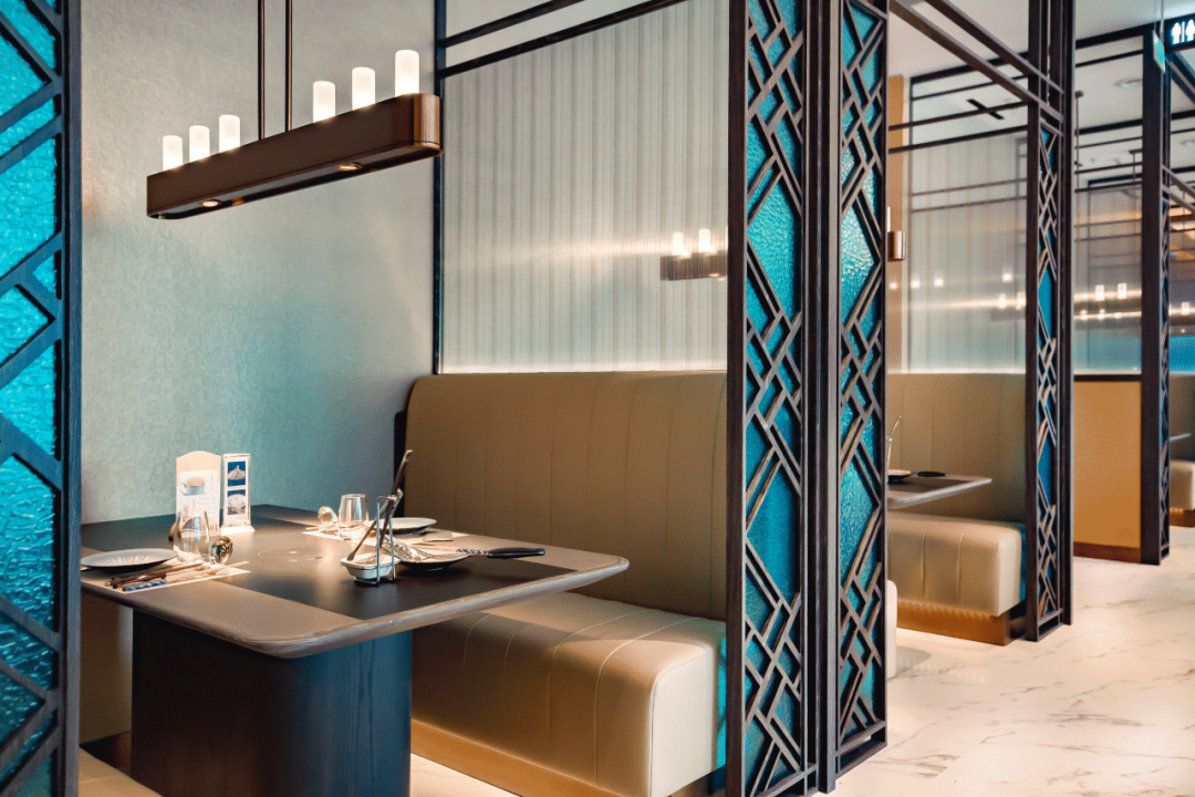 幾何裝飾拼接詩意畫幕,現(xiàn)代輕奢風(fēng)格,舒適恬靜,是商務(wù)宴請和親友聚會(huì)的絕佳選擇。