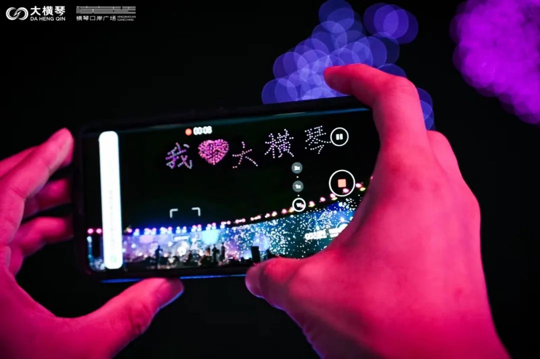 當(dāng)晚,橫琴口岸正上空,還演繹了一場點(diǎn)亮夜空、打破傳統(tǒng)的星空大秀。一架架無人機(jī)排著整齊的隊(duì)列,在夏日的夜空里亮起了點(diǎn)點(diǎn)星光。機(jī)群盤旋上升匯聚,在空中先后編織出“我愛橫琴”、“25”、“金蓮花”等一個個絢麗的方陣,在夜空中留下了一個個美好的祝福,而在場的觀眾也隨著無人機(jī)方陣的變化,許下對琴澳協(xié)同發(fā)展的美好期許。