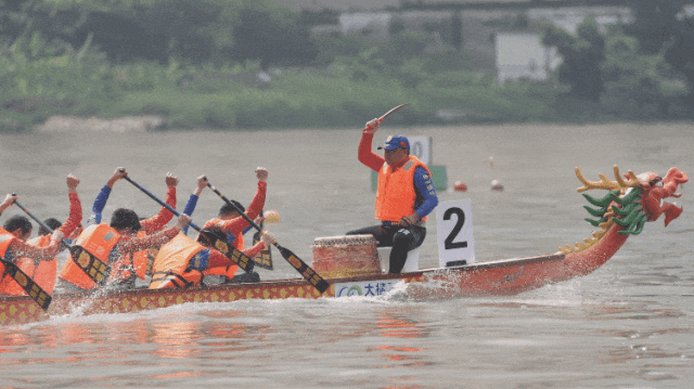 公開組第一名龍舟沖線