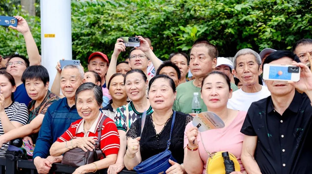 “我每年都和爸爸媽媽一起來看龍舟賽,現(xiàn)場(chǎng)的氛圍太震撼了!作為斗門人,我感到非常開心和自豪。”斗門小觀眾彥宏開心地說。與此同時(shí),不少游客專門從外地趕來觀賞這場(chǎng)“水上競(jìng)技盛宴”。在眾多觀眾中,來自南屏的歐先生是龍舟賽的“鐵桿粉絲”,盡管的腿部受傷,他也要雙手拄著拐杖,全程站著關(guān)注觀賽。